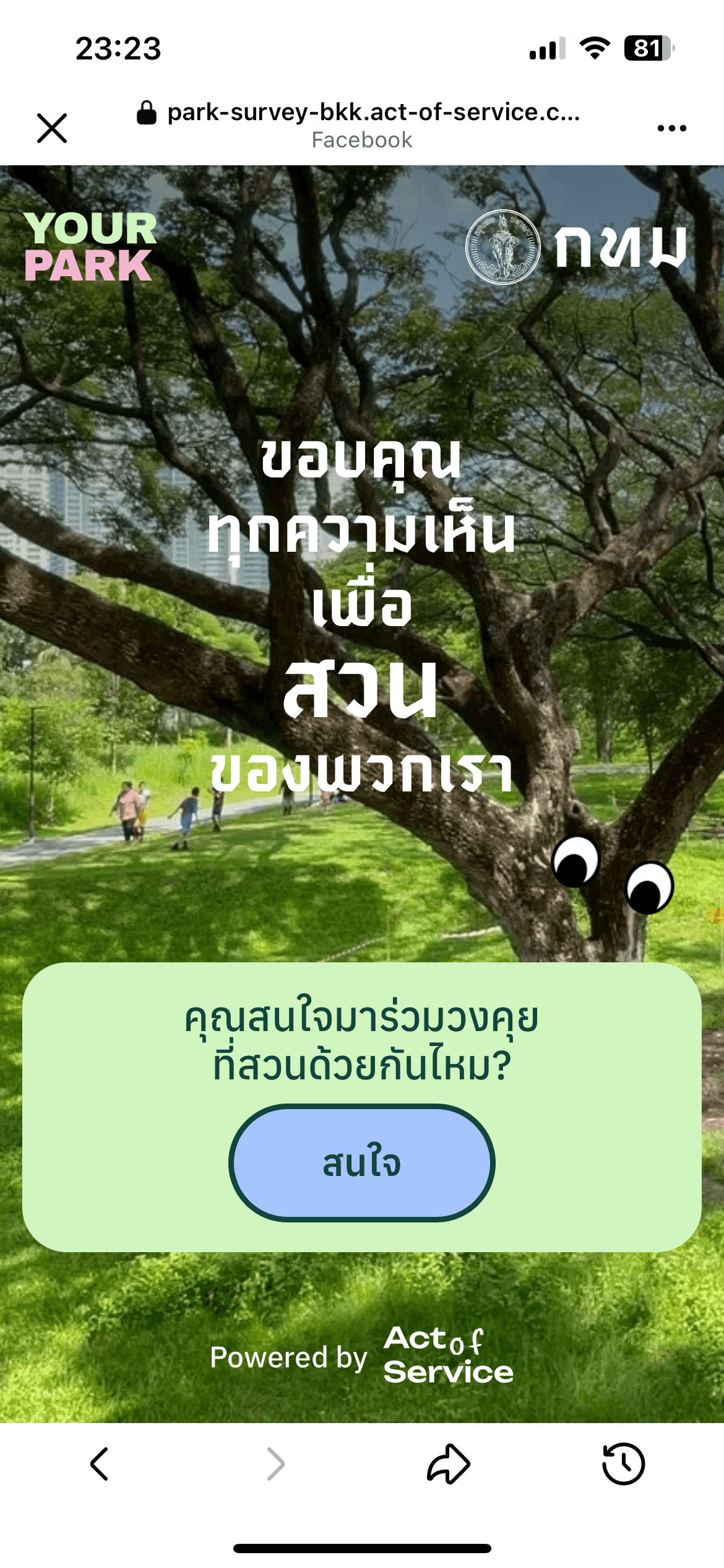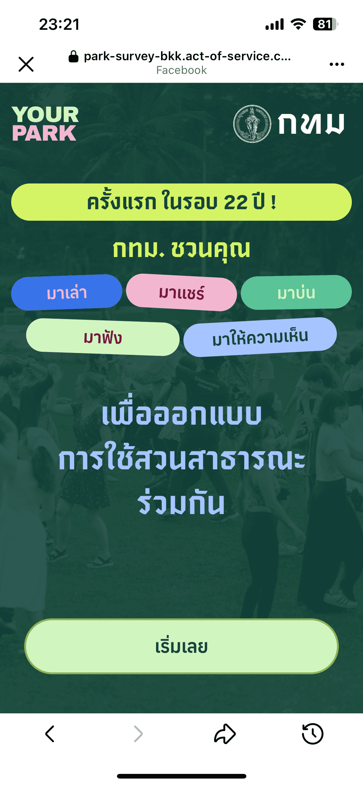 A collaboration with the Bangkok Governor’s Office to gather public feedback on park rules and policies for the first time in 22 years